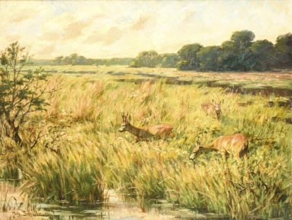 SCHÜTZ, Heinrich (1875 Offenbach - 1946 Munich). Red Deer in the Sunshine.