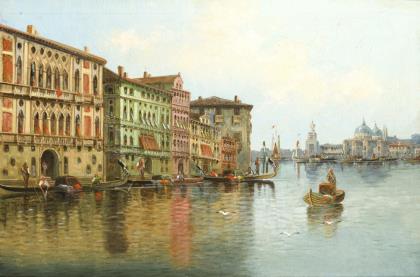 Indistinctly signed: View of Venice with Santa Maria della Salute.