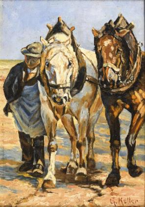 KELLER, Gustav (1860 - 1911). Farmer with horses.