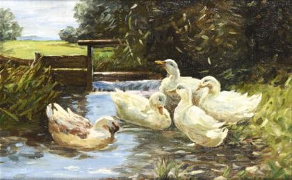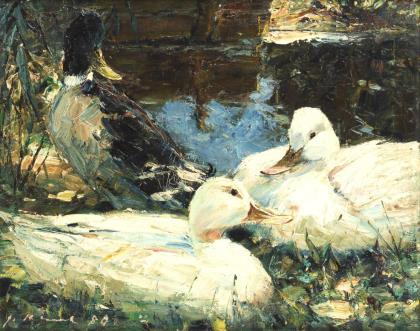 KLARL, Josef (1909 Straubing - 1986 Schelklingen). Ducks on the Bank.