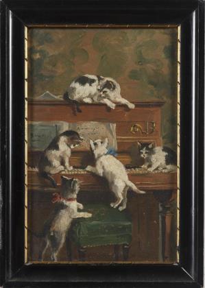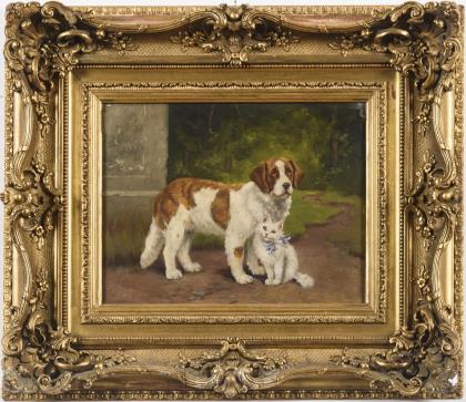 HEYER, Arthur Umkreis. St. Bernard and Angora Cat.