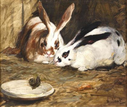 STUTZ, Ludwig (1865 Hoheneck - 1917 Ilmenau). Hare and Snail.