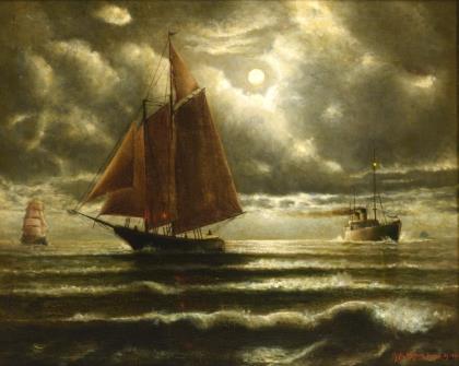 STUCKE, Th. H. L. Otto. Ships in the moonlight off New York.