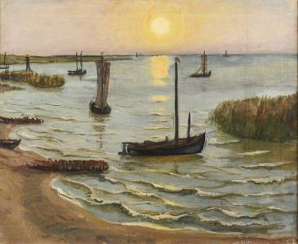 TEICHMANN, Alfred attributed (1903 Gersdorf - 1980 Dresden). Keitel Barges at Sunrise.