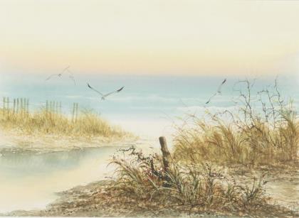 Signed indistinctly: Coastal landscape.