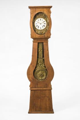 Comtoise grandfather clock with grand pendulum in rare softwood case
