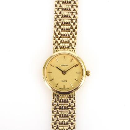 Gehäuse und Armband 585er Gelbgold. Zifferblatt, Gehäuse, Armband und Werk signiert. Ankerwerk mit Genfer Streifen, Kaliber 709. Handaufzug, Werk läuft. Armband mit Faltschließe. L 18 cm, ø 16 mm, 18 g
