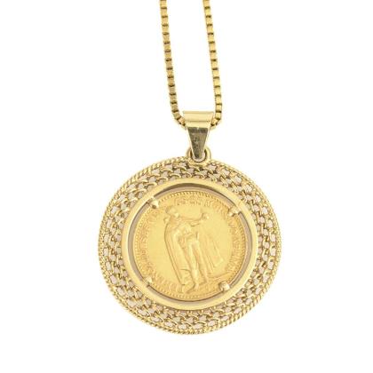 Coin pendant on chain.