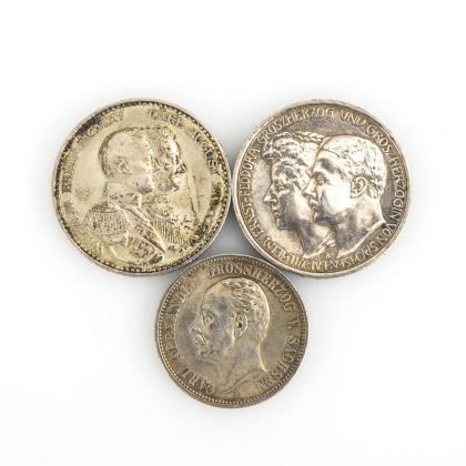 3 Mark, 1910, "Wilhelm Ernst. Feodora Groszherzog und Groszherzogin von Sachsen, IV. I.", Münzstätte A. / 3 Mark, 1915, "Wilhelm Ernst MCMXV Carl August MDCCCXV" / 2 Mark, 1898, "Carl Alexander Grossherzog v. Sachsen"