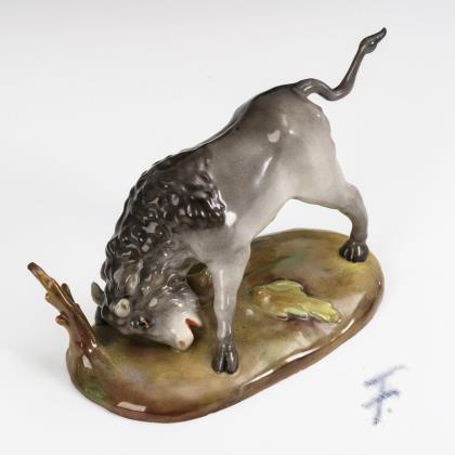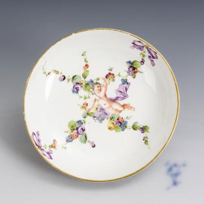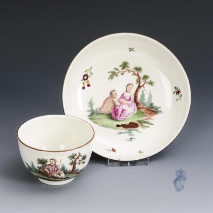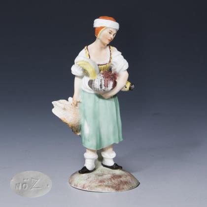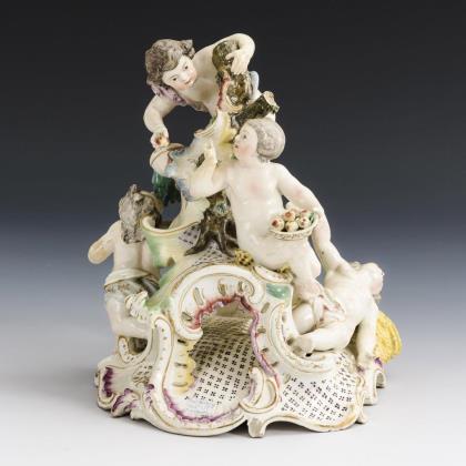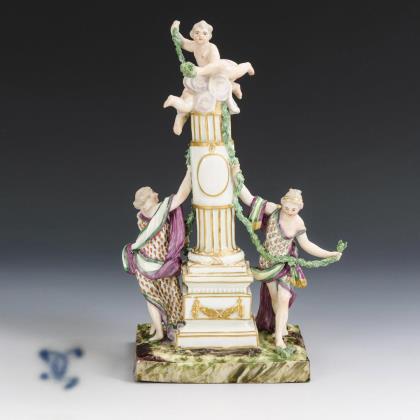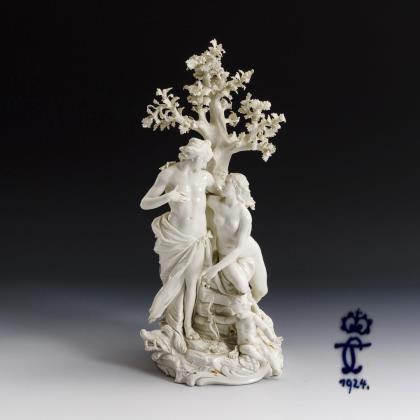 Modell von Johann Joachim Kaendler 1750. Farbig bemalt, gold staffiert. Unglasierter Boden, Schwertermarke am Sockel