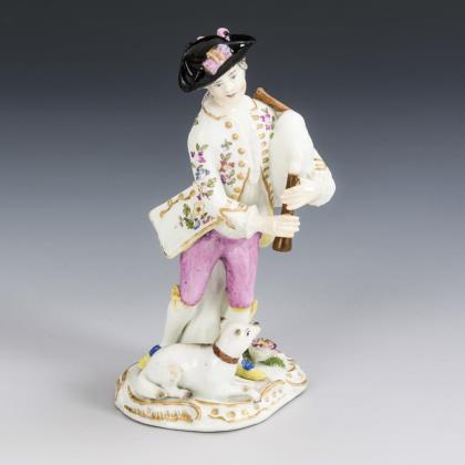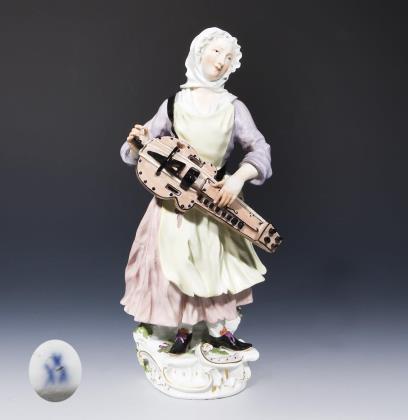 Large baroque figure: hurdy-gurdy player. Meissen.