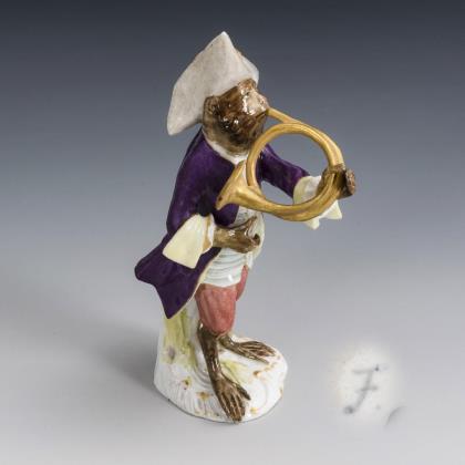 Affenmusiker mit Waldhorn, nach einem Modell aus dem Jahr 1753 von Johann Joachim Kaendler (1706 Dresden - 1775 Meißen) für die Porzellanmanufaktur Meissen