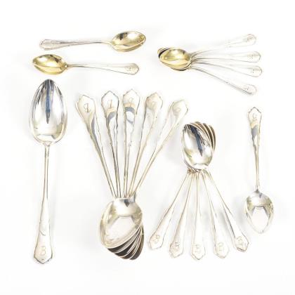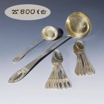 2 ladles, 6 dessert spoons, 8 coffee spoons. Wilkens & Söhne, Hemelingen.