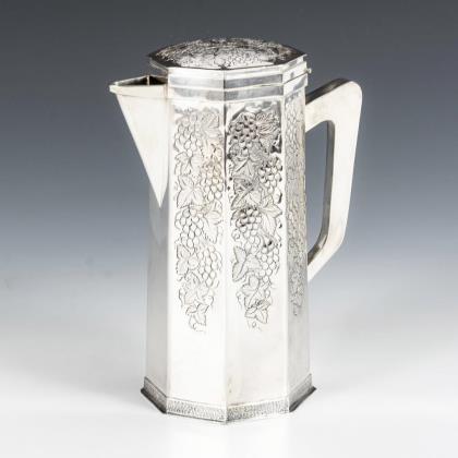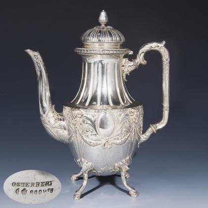 Silver coffee pot in classicistic style. Wilhelm Binder, Schwäbisch Gmünd for Carl Osterberg, court jeweller in Stuttgart.