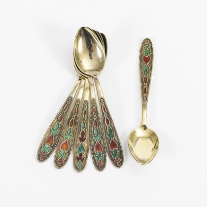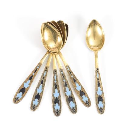 Vergoldete Löffel mit blauer Emailarbeit am Griff