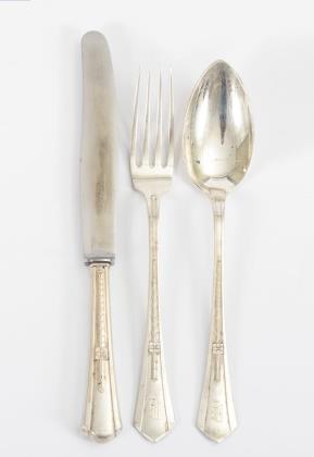 Modell Straßburger Empire. Modell-Jahr: 1870. Ornamental reliefiert. Kellen innen vergoldet