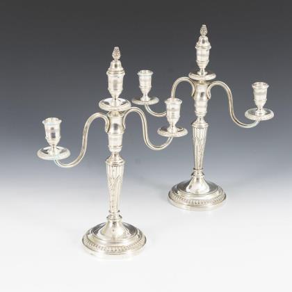 3-flammiger Leuchter mit Balusterschaft und 2 elegant geschwungenen Armen