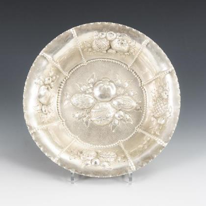 Silver bowl with plastic fruit decor. Bruckmann & Sons.