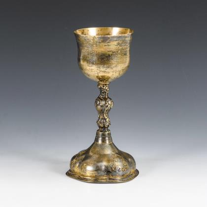 Schlichter Messkelch mit glatter Kuppa und reliefiertem Balusterschaft