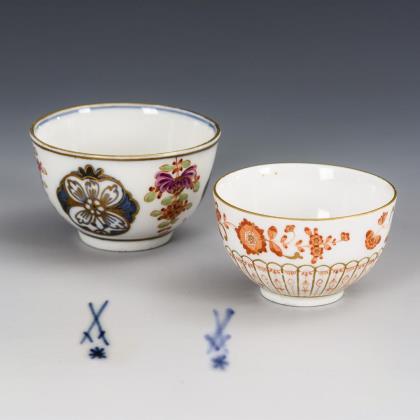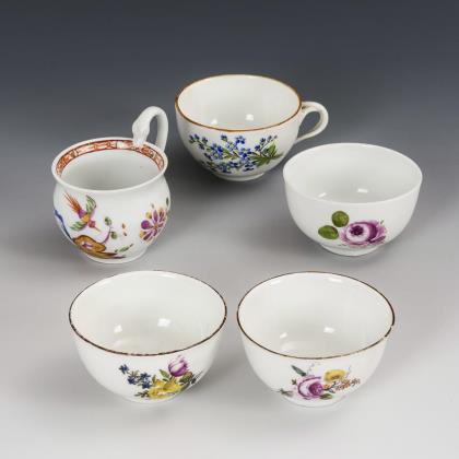 3 baroque couplers and 2 cups. Meissen.