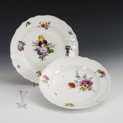 2 baroque plates with floral painting. Meissen.
