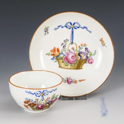 Baroque double-handled cup, saucer from the Royal Court Confectionery. Meissen.