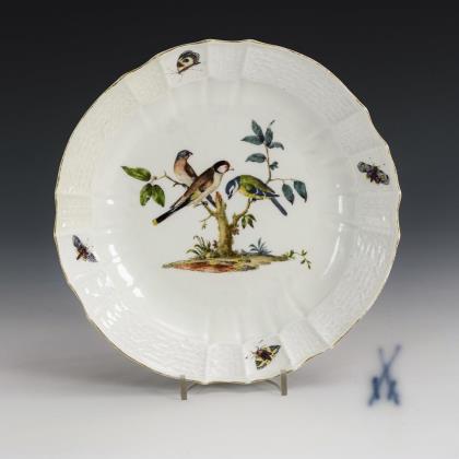 Dessert plate with floral and bird painting. Meissen.