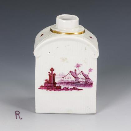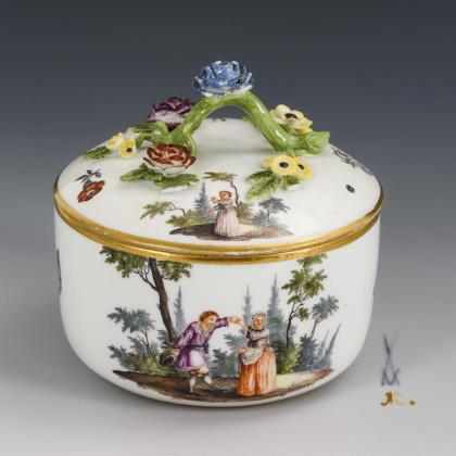 Baroque tea caddy with shopping scenes. Meissen.