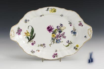 Baroque vegetable plate with floral painting. Meissen.