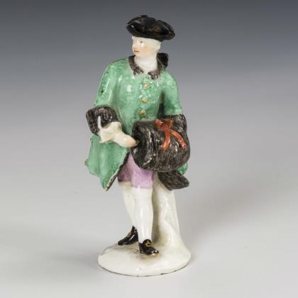 Entwurf von Johann Joachim Kaendler (1706 Dresden - 1775 Meißen) und Peter Reinicke (1715 Danzig - 1768 Meißen). Stehender Herr mit großem Muff