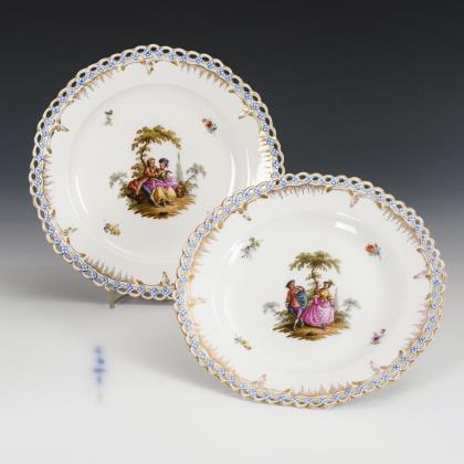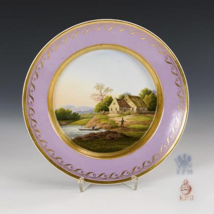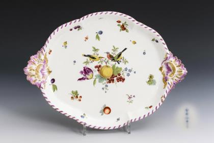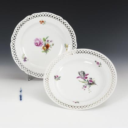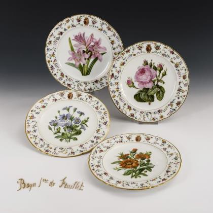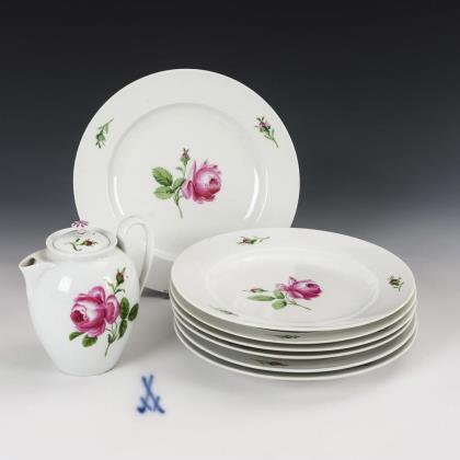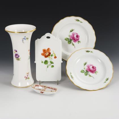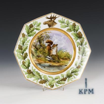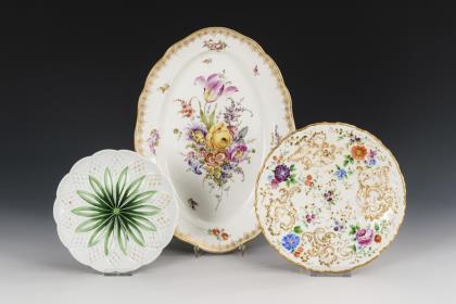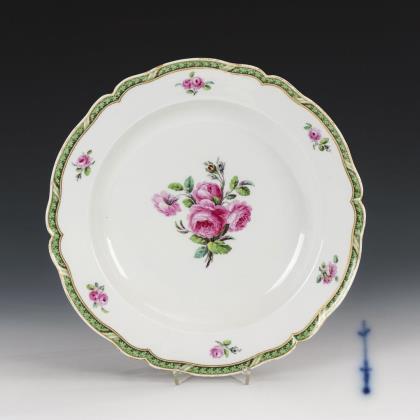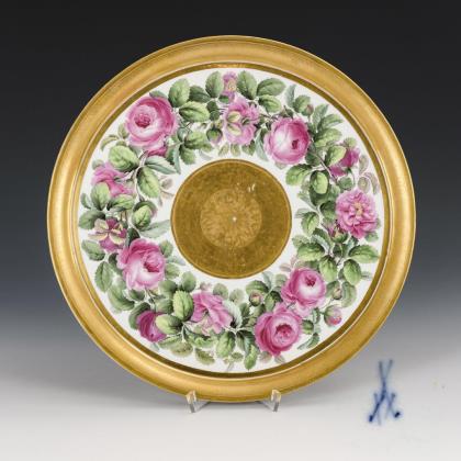 Teller mit Eichenblattbordüre sowie einem Rosenbukett im Spiegel
