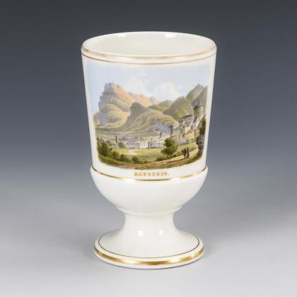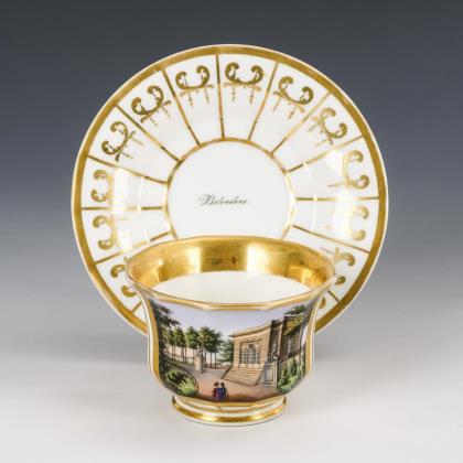 Polygonale Glockentasse mit der unterseitig "Belvedere" bezeichneten Ansicht des Dritten Belvederes in Dresden (1814 erbaut, 1842 abgerissen)