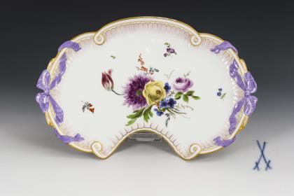 Teller mit Perlrand, im Spiegel ein Blumenbukett