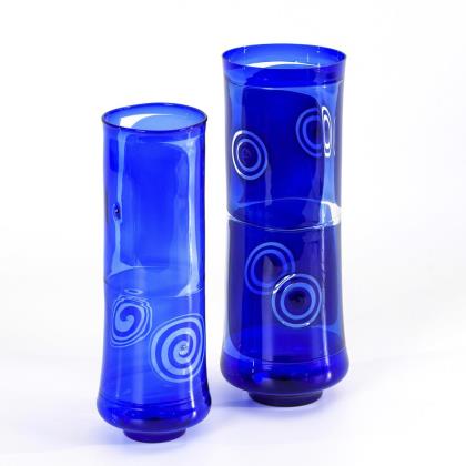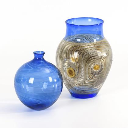 Balustervase mit der umlaufend geätzten Darstellung einer ägyptischen Nillandschaft mit Blick auf die Pyramiden von Gizeh