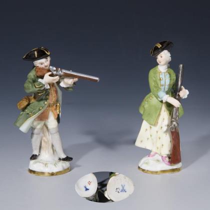 Two miniature hunters. Meissen.
