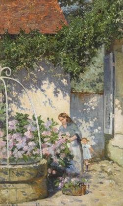 BLANCHET, Magnon. Mother and daughter in the garden.