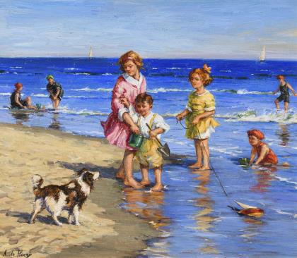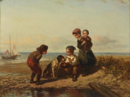 VERVEER, Elchanon Leonardus (1826 The Hague - 1900 ebd.). Fischerkinder am Strand.
