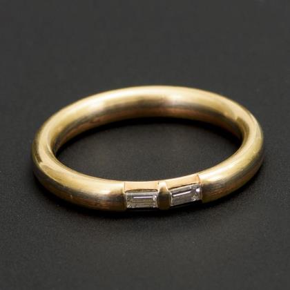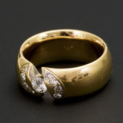 Band ring with diamonds.