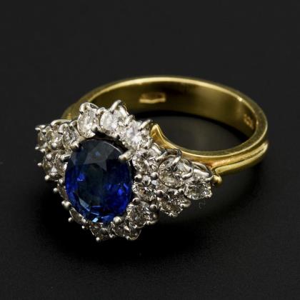 Ring with sapphire and diamonds