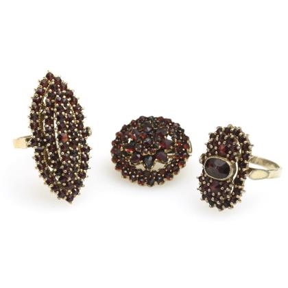 2 garnet rings and brooch
