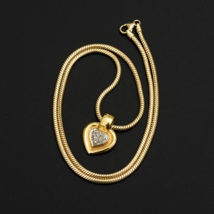Heart pendant with diamonds on snake chain