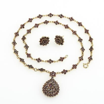 Necklace and pair of earrings with garnets