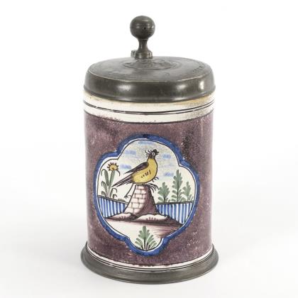 Baroque faience roller jug with bird. Hannoversch-Münden.
