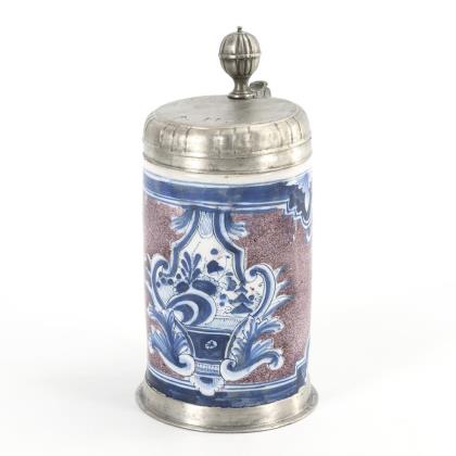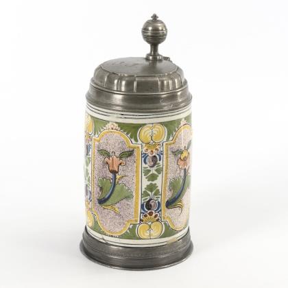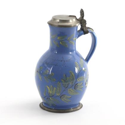 Large Thuringian faience roller jug with crowned reserve