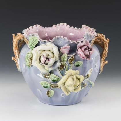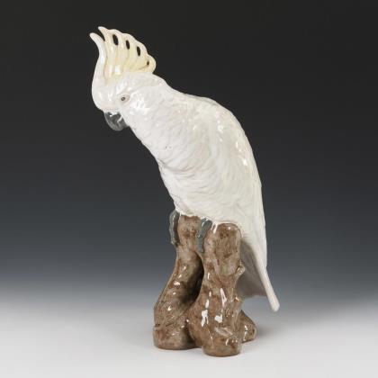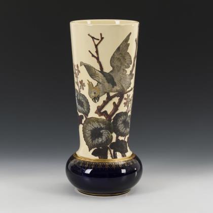 Large bar vase with yellow-crested cockatoo and begonia decor. Villeroy & Boch, Dresden.