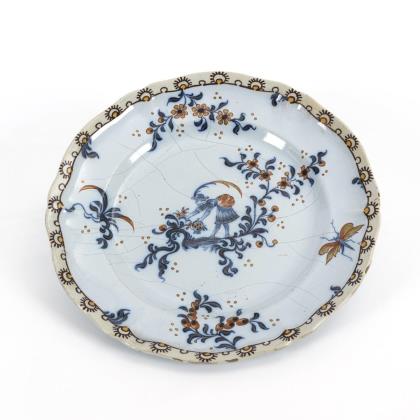 Barocke Fayence-Fächerplatte mit Fruchtmalerei.
