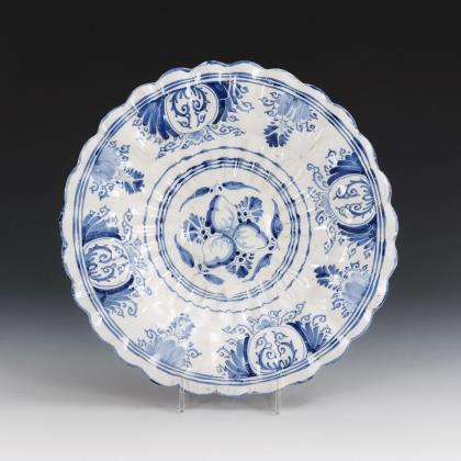 Baroque faience fan plate with fruit painting