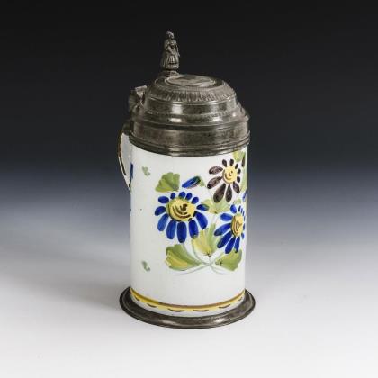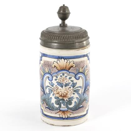 Faience cylindrical jug with floral painting. Schrezheim.