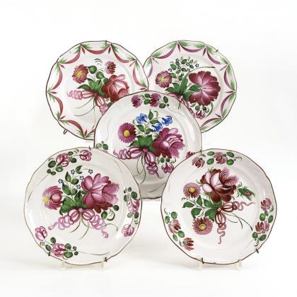 5 large faience plates with floral painting