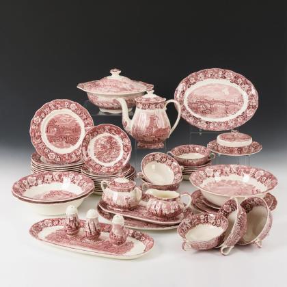 Large set of various service pieces "Thames River Scenes". Palissy Pottery.